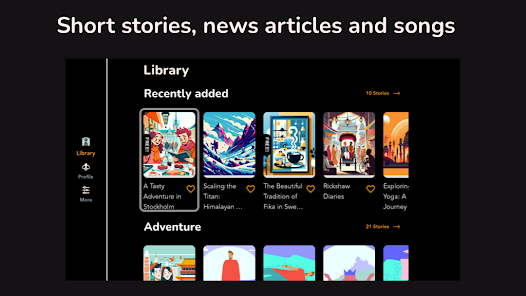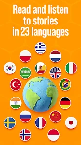 - Vast Content Library: Explore an extensive collection of stories, audiobooks, and music categorized by difficulty levels. Discover content tailored to your tastes and progress, ensuring an engaging and personalized learning experience.