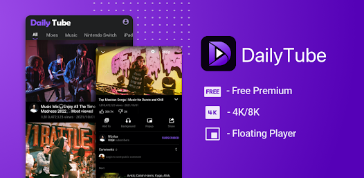 DailyTube allows you to search for your favorite or trending videos, channels, and playlists. It also allows you to play music and movies in full screen or as a floating pop-up window that is always on top. In addition, the floating tube background player allows you to use your applications while listening and watching music and videos on the Internet. This way, you can easily enjoy ad-free music and videos while managing emails or answering messages from friends. That's so useful!