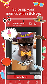 Meme Generator PRO allows you to edit your text according to your preferences, such as font style, size, color, and place them in the desired position. In addition, the application also provides stickers such as emojis and stickers made from other memes.