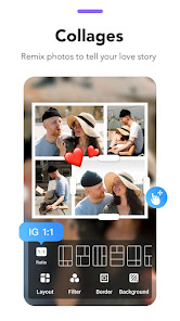 Simply select several images, the Photo Editor will instantly mix them into a stunning photo collage. You can choose the layout you like best, edit the collage with filter, background, stickers, text and much more.