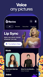 Revive is an animation maker. With this photo animator, you can easily make your face dance. It offers a carefully curated selection of animations and fun videos for images. Animate images to funny videos and make them stand out with a variety of modern effects and sing like Monroe, Queen, Rihanna, etc. You can also create cartoon animations with the meme creation option! Bring your boring avatars to life using AI video Generator!. Revive the ultimate animation creator. With our advanced image animator, you can turn your face into a captivating dancer. Simply follow a few steps to bring your photos to life and captivate your audience with dynamic movement and passion. Get ready to elevate your images and watch your face dance in people's hearts. Our face app has many fascinating features that will bring your photos to life.
