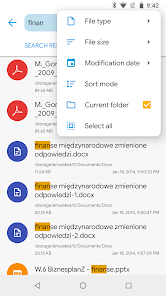 Although this file manager does not have a dedicated storage analyzer, you can find out which files take up the most space by going to the folder properties of internal storage or the SD card. You will find information about the percentage of space each folder occupies and the list of the largest files. You can also use the search with a file size filter.