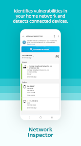 ✓ Network Inspector: scans the network and all connected devices to identify security breaches