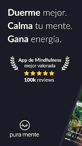 Start today to calm your mind, to relax with breathing, to live more consciously. Substantially improve your mood. Pura Mente is the highest-rated meditation app in Spanish. Our users recommend our content to relieve tension, reduce stress, calm anxiety, and improve night's rest.
