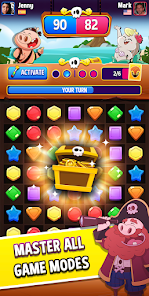 Match Masters pits players against each other in turn-based battles on a common match 3 game board, so players must consider both their own possibilities and those of their opponents, as well as the score their opponent will get.