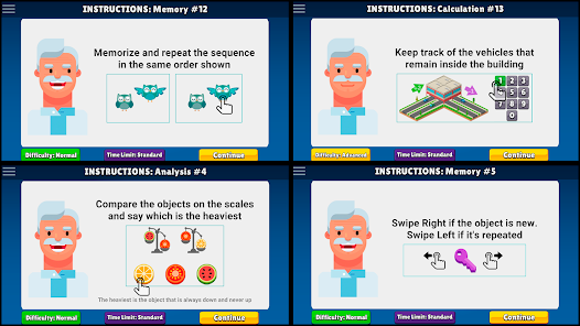 This game is designed as a personal gym trainer for your brain. The goal is to train a couple of minutes every day in short sessions, to keep your brain challenged and stimulated with fun mental games. This application will stimulate the 4 key areas of your brain: Memory, Concentration (Attention), Problem Solving (Analysis) and Calculation. It's like an exercise for your brain but fun.